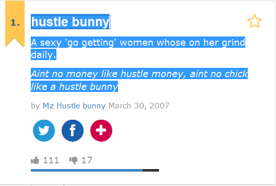 http://www.urbandictionary.com/define.php?term=hustle%20bunny